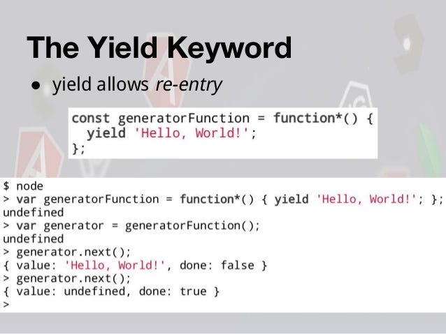 Num = 0 while true : Generator functions use the python yield keyword instead of return. The yield * expression is used with generator functions or iterables. If the iterable is empty or the generator function has no yield keyword, the iterator returned from the main generator function call will be completed with the first call to next () and will never pause in between the yield * calls. 22/06/2015 · it'd be useful to get a warning when a generator function is written without a yield statement inside it.