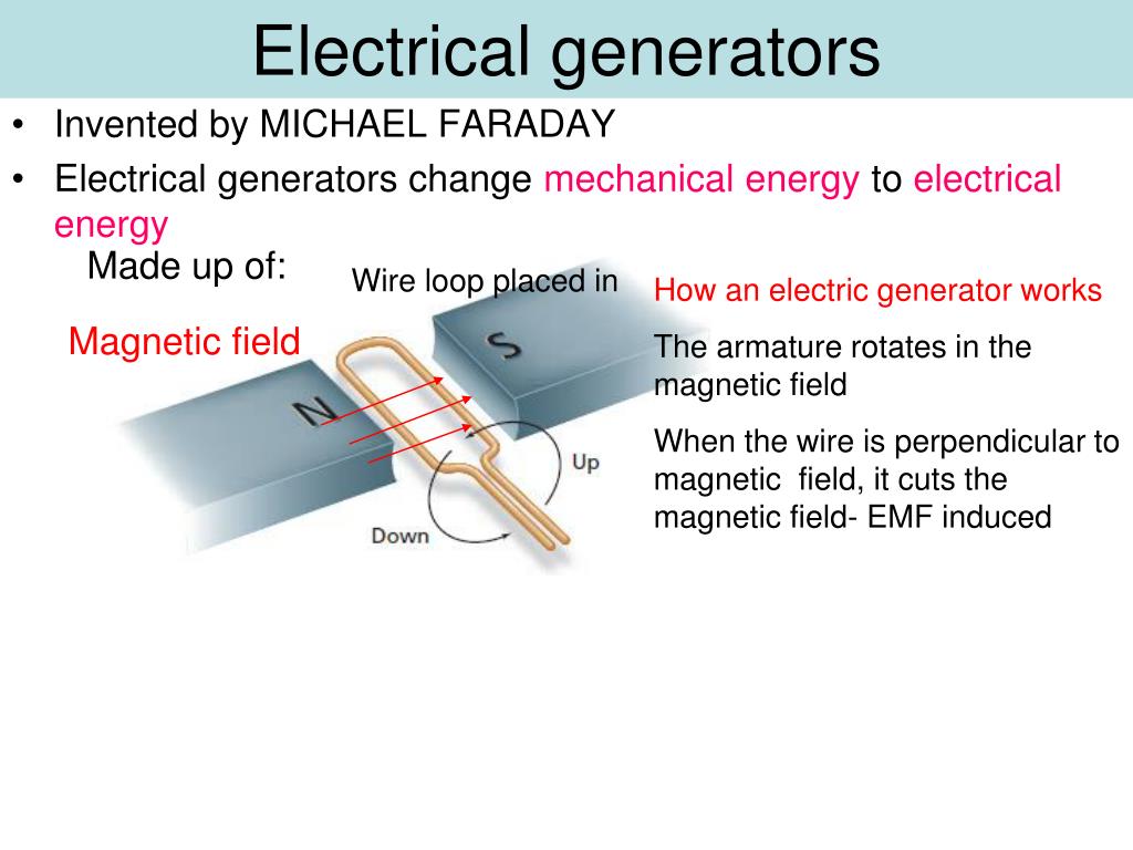 Michael mosley, cassie newland and mark miodownik describe the major scientific invention of the electrical generator by michael faraday in the 1820s. William ritchie (british) reported in march 1833 of a device that he claimed to have built already nine month earlier in the summer of 1832. He then goes on to attach the two wires that . As its name suggests, a generator generates electricity. Generators provide nearly all of the power .