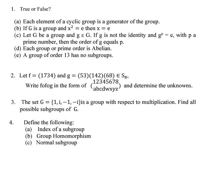 If a cyclic group g is generated by an element 'a' of order 'n', then am is a generator of g if m and n are relatively prime. For example (−1) = {1,−1} \= g so − . Prove that if h is. First we will start with . However, not all elements of g need be generators.
